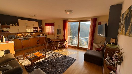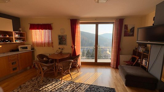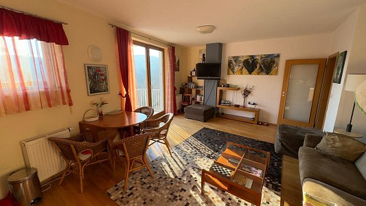 Byt je plně vybaven nábytkem na míru a připraven k okamžitému užívání – ať už pro vlastní víkendové úniky z města, nebo jako výnosná investice.