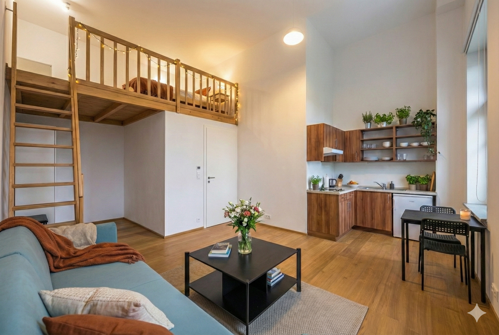 Byt je ideální jako stylové startovací bydlení pro jednotlivce či pár, městský pied-à-terre pro ty, kdo do Prahy často dojíždějí, nebo jako investiční příležitost s potenciálem atraktivního dlouhodobého či střednědobého pronájmu právě díky unikátnímu charakteru budovy a dobré dopravní dostupnosti.