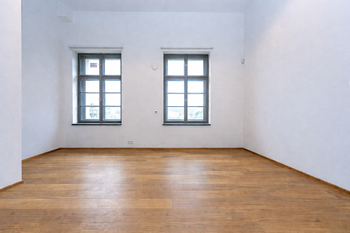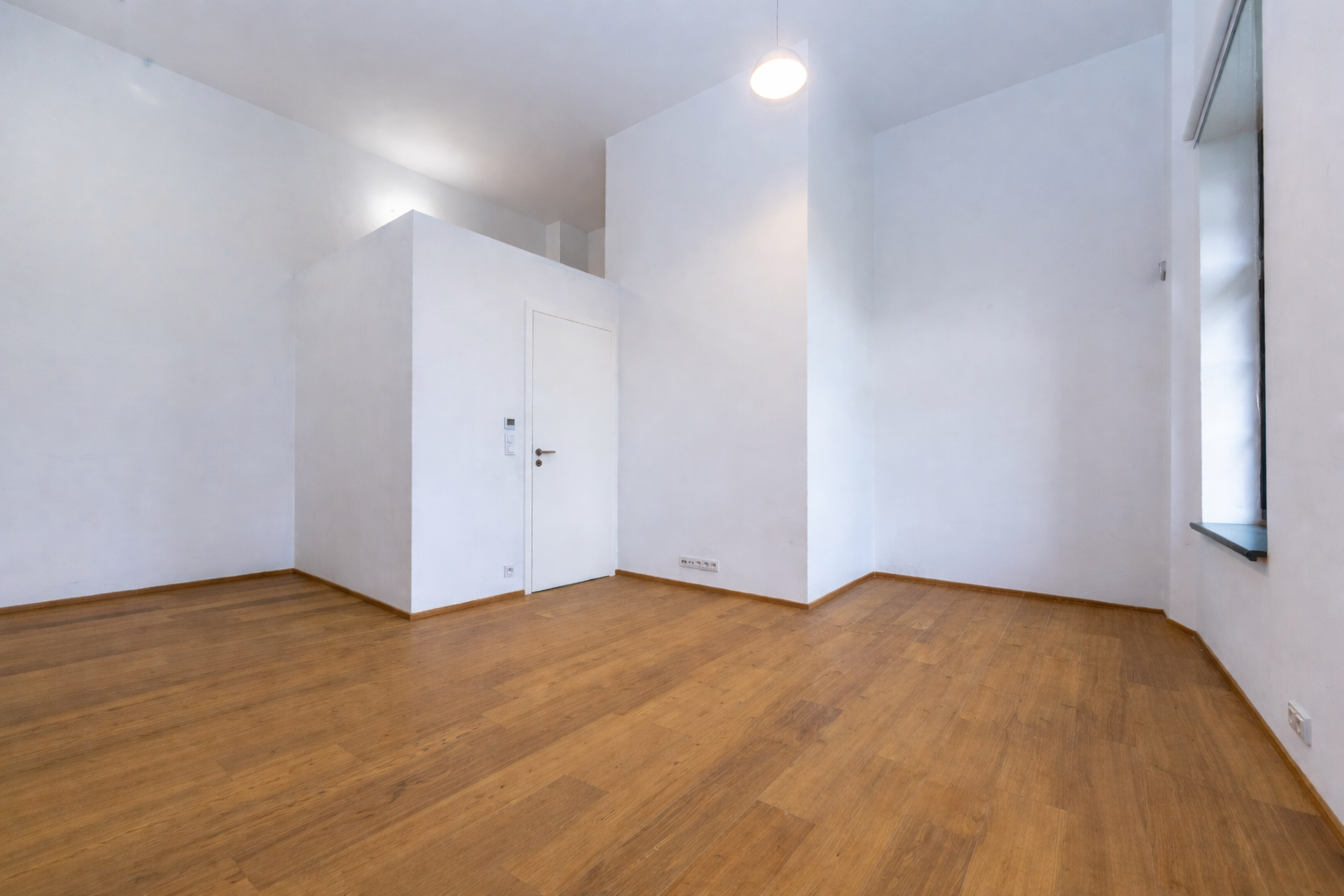 Interiér je navržen v moderním, světlém stylu s důrazem na jednoduchost a funkčnost. Vysoké stropy, velkoformátová okna a možnost využití vestavného nábytku včetně schodiště s úložnými prostory dávají bytu charakter městského loftu. V galerii nabízíme 3 varianty budoucího uspořádání na přiložených vizualizacích.