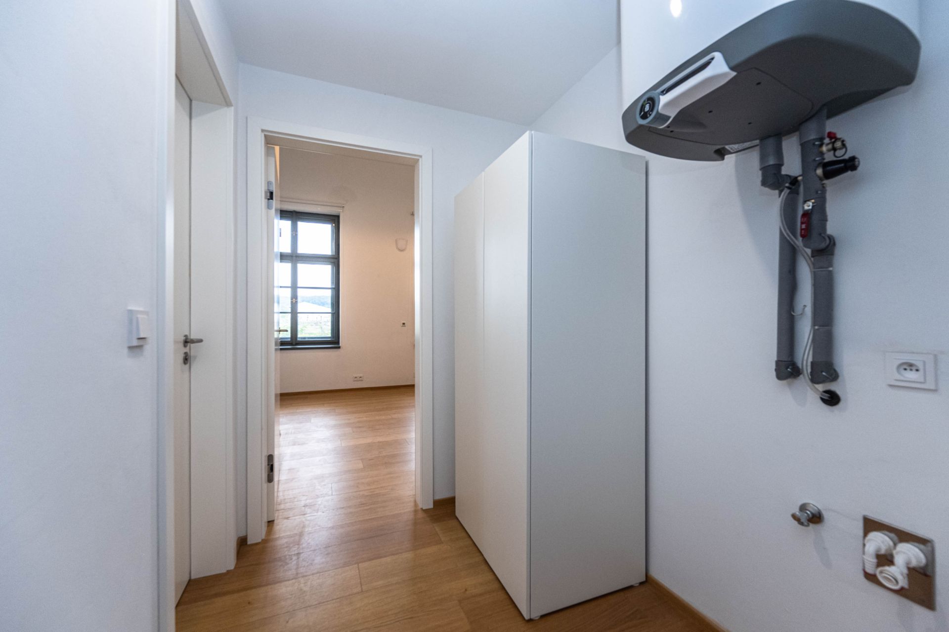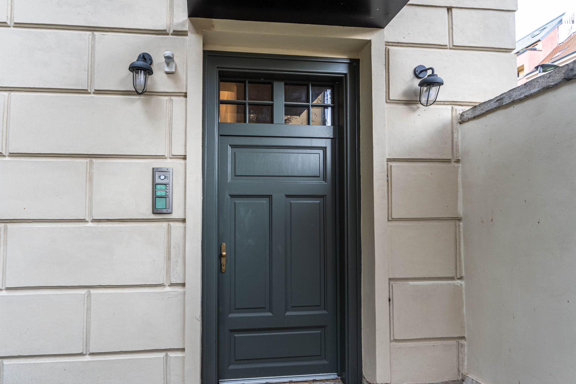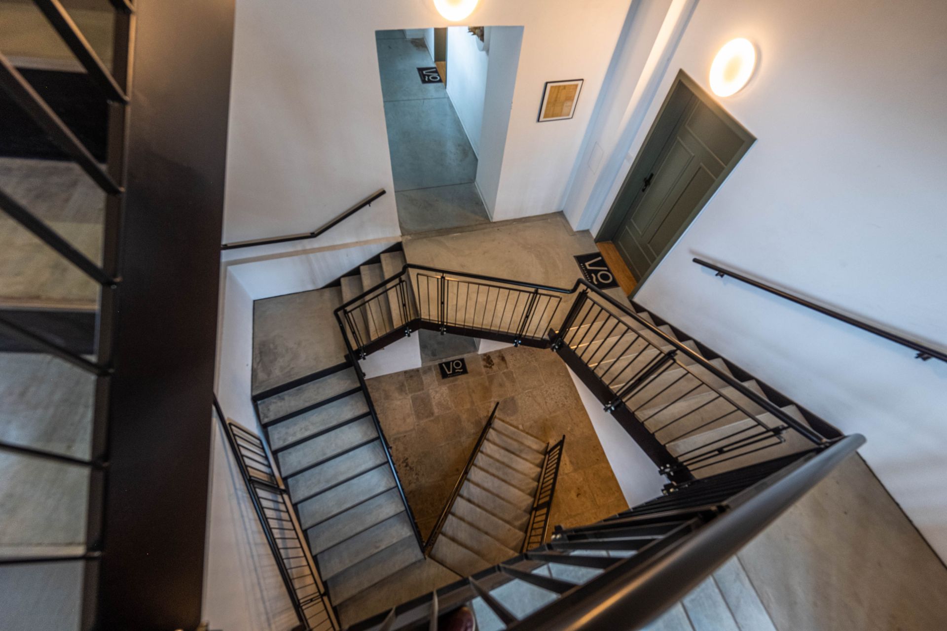 Interiér je navržen v moderním, světlém stylu s důrazem na jednoduchost a funkčnost. Vysoké stropy, velkoformátová okna a možnost využití vestavného nábytku včetně schodiště s úložnými prostory dávají bytu charakter městského loftu.
